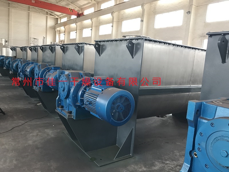 在槳葉及夾套通入熱介質(zhì)加熱的同時(shí),出料口上部同時(shí)進(jìn)行抽濕,這樣大大增加了設(shè)備的干燥強(qiáng)度。蒸發(fā)出來的水份由抽濕風(fēng)機(jī)帶出干燥機(jī)。