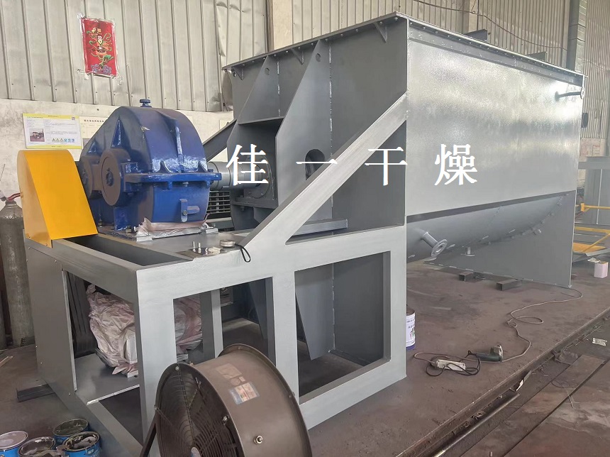熱空氣由入口管以適宜的噴動速度從干燥機底部進入攪拌粉碎干燥室,對物料產(chǎn)生強烈的剪切、吹浮、旋轉(zhuǎn)作用,于是物料受到離心、剪切、碰撞、磨擦而被微?;?,強化了傳質(zhì)傳熱。在干燥機底部,較大較濕的顆粒團在攪拌器的作用下被機械粉碎,濕含量較低、顆粒度較小的顆粒被旋轉(zhuǎn)氣流夾帶上升,在上升過程中進一步干燥。由于氣固兩相作旋轉(zhuǎn)流動,固相慣性大于氣相,固氣兩相間的相對速度較大,強化兩相間的傳質(zhì)傳熱,所以該機生產(chǎn)強度高。